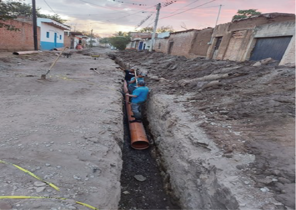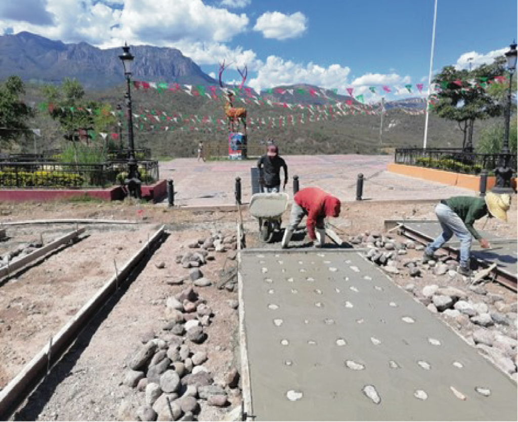 Construcción de pavimentación con concreto hidráulico, adoquín, banquetas y machuelos. Construcción de red de drenaje.