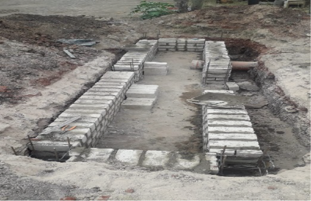 Construcción de empedrado ahogado en concreto con huellas de concreto hidráulico y banquetas.